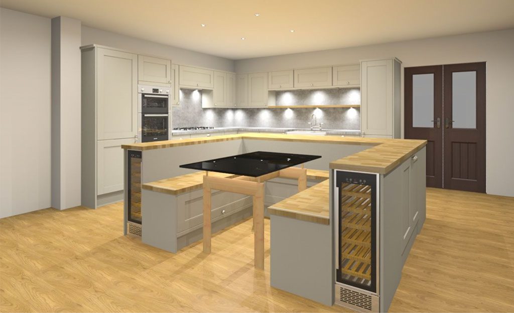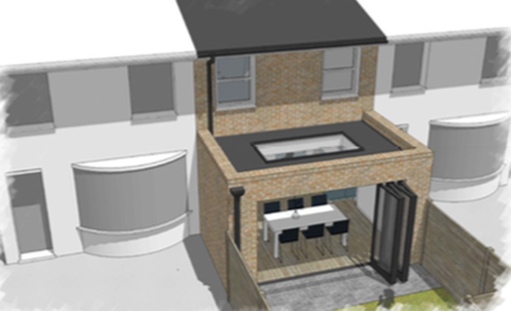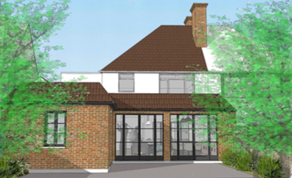 KT5 Construction have been enlisted to add a large 45sqm extension to a tired family bungalow, to create an open plan, modern kitchen-diner as well as add a family play room.