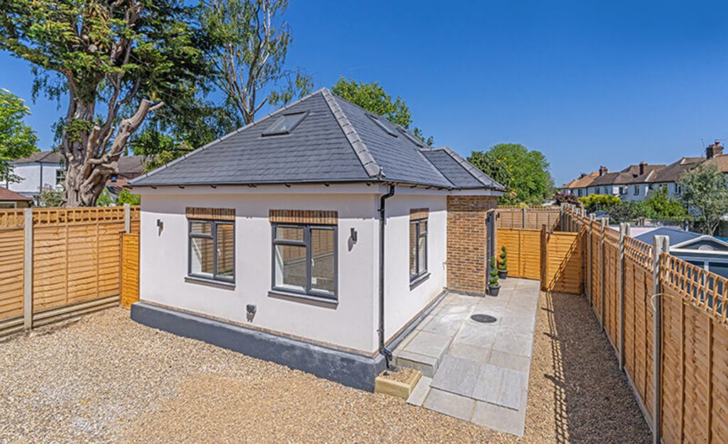 KT5 Construction managed this project from start to finish, with all design and difficult planning aspects to take into consideration. No more derelict garages, instead 2 new beautiful bungalows with private gardens and luxury finishes.